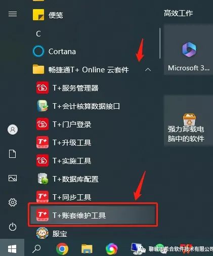 1.左下角开始找到T+软件展开,点开T+账套维护工具。