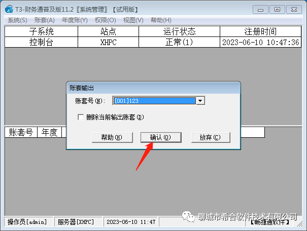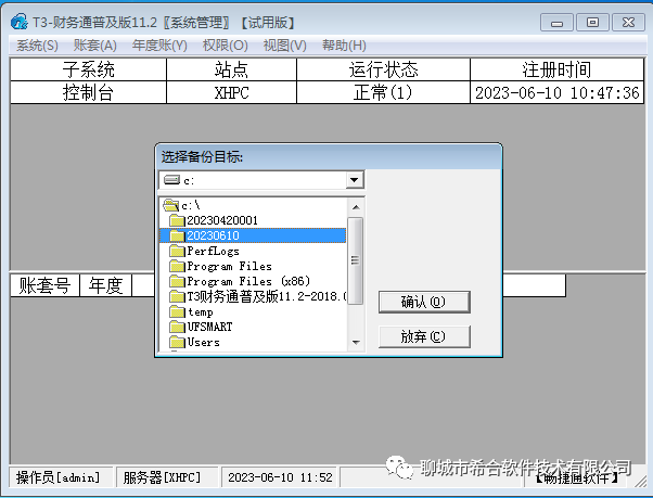 3、选择要备份的账套后,确定;