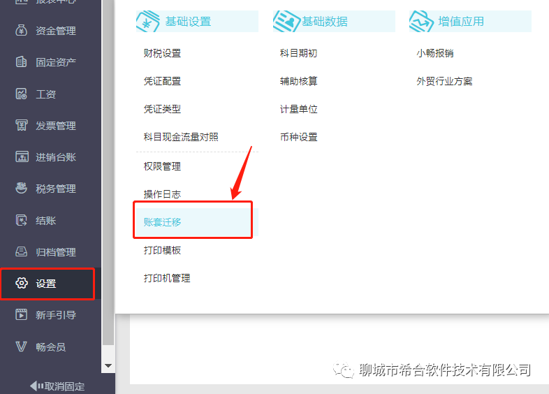1.设置--账套迁移