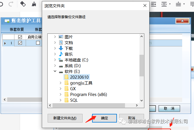 5、选择想要备份到本地磁盘的路径双击,确认,可以提前在计算机相应盘符新建文件夹;