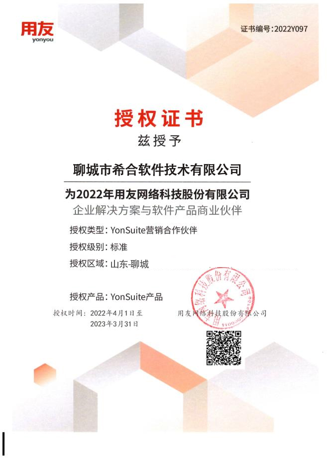 聊城市希合软件技术有限公司为用友软件、畅捷通软件授权四星级合作伙伴,是畅捷通、用友集团设立的销售、服务中心,是用友软件聊城区域的核心合作伙伴。 公司专业从事财务、供应链、生产管理及人力资源管理、办公自动化管理等软件开发与推广的科技企业,公司员工全部通过用友工程师认证,希合公司目前已经成为聊城近500多家企事业单位的战略合作服务商。